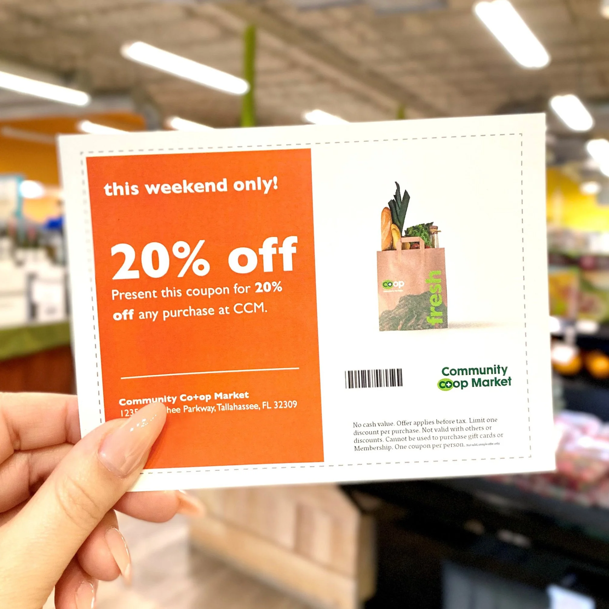 New members receive a $20 off coupon when they join the co-op along with member extras such as discounts and coupons!